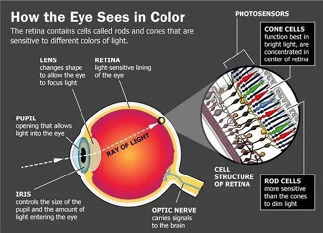 以人們看到顏色為例——萬物本身沒有顏色,而只是光線照射到物體上后反射到眼睛,再刺激大腦回路的產(chǎn)生的效果。