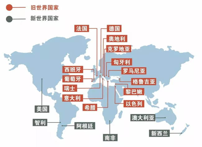 在逛展會(huì)的時(shí)候我們經(jīng)常會(huì)聽(tīng)到說(shuō),這個(gè)是來(lái)自新世界國(guó)家的葡萄酒,那個(gè)是來(lái)自舊世界國(guó)家的葡萄酒,有的可能會(huì)問(wèn)新世界的葡萄酒怎樣怎樣,舊世界的葡萄酒怎樣怎樣。那么,新舊世界的葡萄酒到底有什么不一樣的呢?