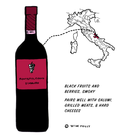 品質(zhì)較高的蒙特布查諾葡萄酒顏色深邃,具有濃郁的黑色漿果氣息,單寧成熟且強勁,因此也常被用來與其他口感比較柔和的葡萄酒混釀。