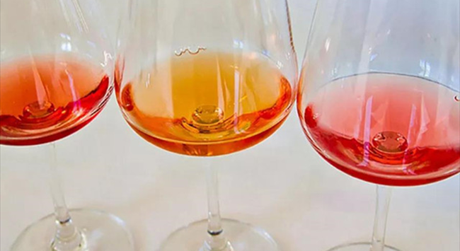 明亮的粉紫色代表的是年輕的桃紅葡萄酒;略帶橙色和棕色則代表陳年。