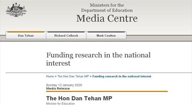 聯(lián)邦教育部官網(wǎng)12日報道,聯(lián)邦教育部長特翰(Dan Tehan)宣布,政府將通過澳洲研究委員會(ARC)為20個新的研究項目提供950萬元的資金。獲資助的項目包括:蒙納士大學(xué)提出的調(diào)查確定葡萄酒地理標(biāo)志所需的標(biāo)準(zhǔn)、證據(jù)和程序,這些標(biāo)準(zhǔn)、證據(jù)和程序用于貿(mào)易協(xié)定和法律糾紛。澳洲天主教大學(xué)提出的開發(fā)一個在線工具,為數(shù)字社會中的兒童識別和分享最佳實踐,包括數(shù)字媒體生產(chǎn)、網(wǎng)絡(luò)安全教育、數(shù)字游戲和數(shù)字育兒等領(lǐng)域的新資源、材料和項目。