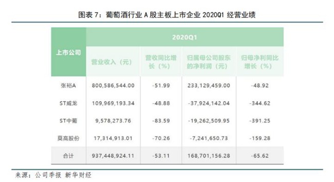 新冠肺炎疫情對于本就脆弱的葡萄酒行業來講,無疑是一記重錘。2020年第一季度,四家葡萄酒企業總營收9.37億元,同比降低53.11%;實現歸母凈利1.69億元,同比降低65.62%。只有張裕一家歸母凈利維持正值,其余皆為虧損。業內人士曾表示“葡萄酒行業'短期不樂觀',2020年將是國內葡萄酒市場近十年來最艱難的一年。”