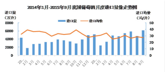 據(jù)海關(guān)數(shù)據(jù)統(tǒng)計,今年前三季度中國累計進口葡萄酒為4.3億升,比去年同期增加46.4%;進口平均價格為每升28.3元,下跌16%。9月當(dāng)月進口6126萬升,同比增加78.4%,環(huán)比增加28.6%。
