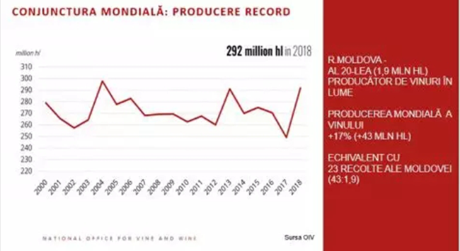其實(shí),不僅是摩爾多瓦,全球都在經(jīng)歷葡萄酒生產(chǎn)過剩。據(jù)OIV的數(shù)據(jù)顯示,2018年全球葡萄產(chǎn)量也達(dá)到了創(chuàng)紀(jì)錄的水平,同比增長17%,增長量為430萬千升,該增長量相當(dāng)于摩爾多瓦共和國23年的葡萄收獲量。