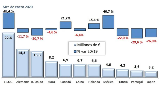2020年1月份西班牙葡萄酒出口平均銷售價格上漲7.5%